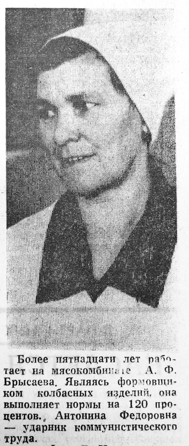 А.Ф. Брысаева — передовик производства: