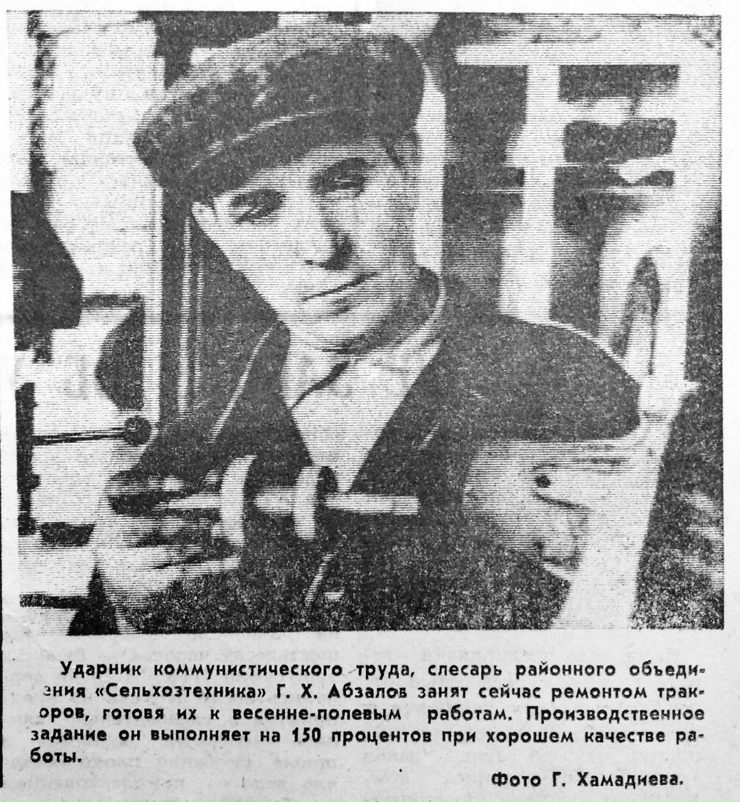 Г.Х. Абзалов — передовик производства: