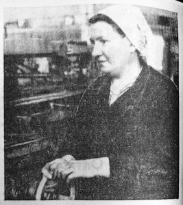 Р.А. Карпова — многостаночница шпульного цеха.