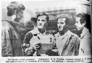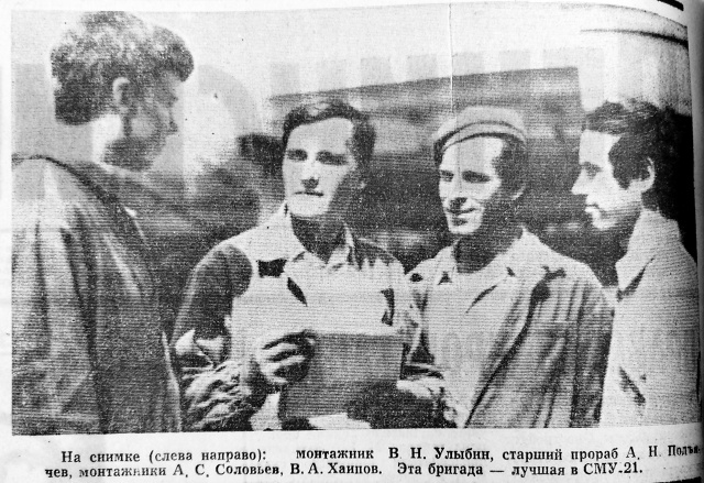 В.Н. Улыбин, А.Н. Подъячев, А.С. Соловьев, В.А. Хаипов — передовики производства: