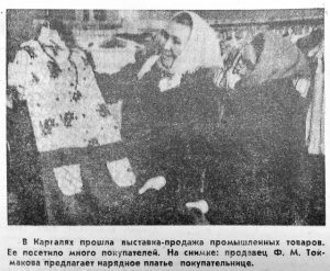 Продавец Ф.М. Токмакова предлагает нарядное платье: