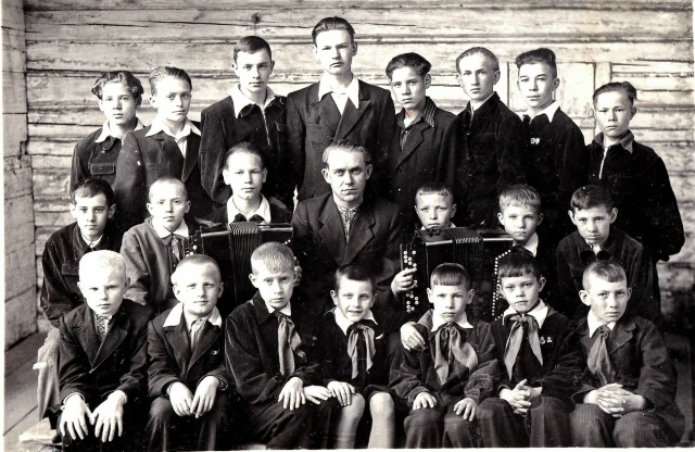 На фото 1954 года — преподаватель А. В. Михайлов с учениками: