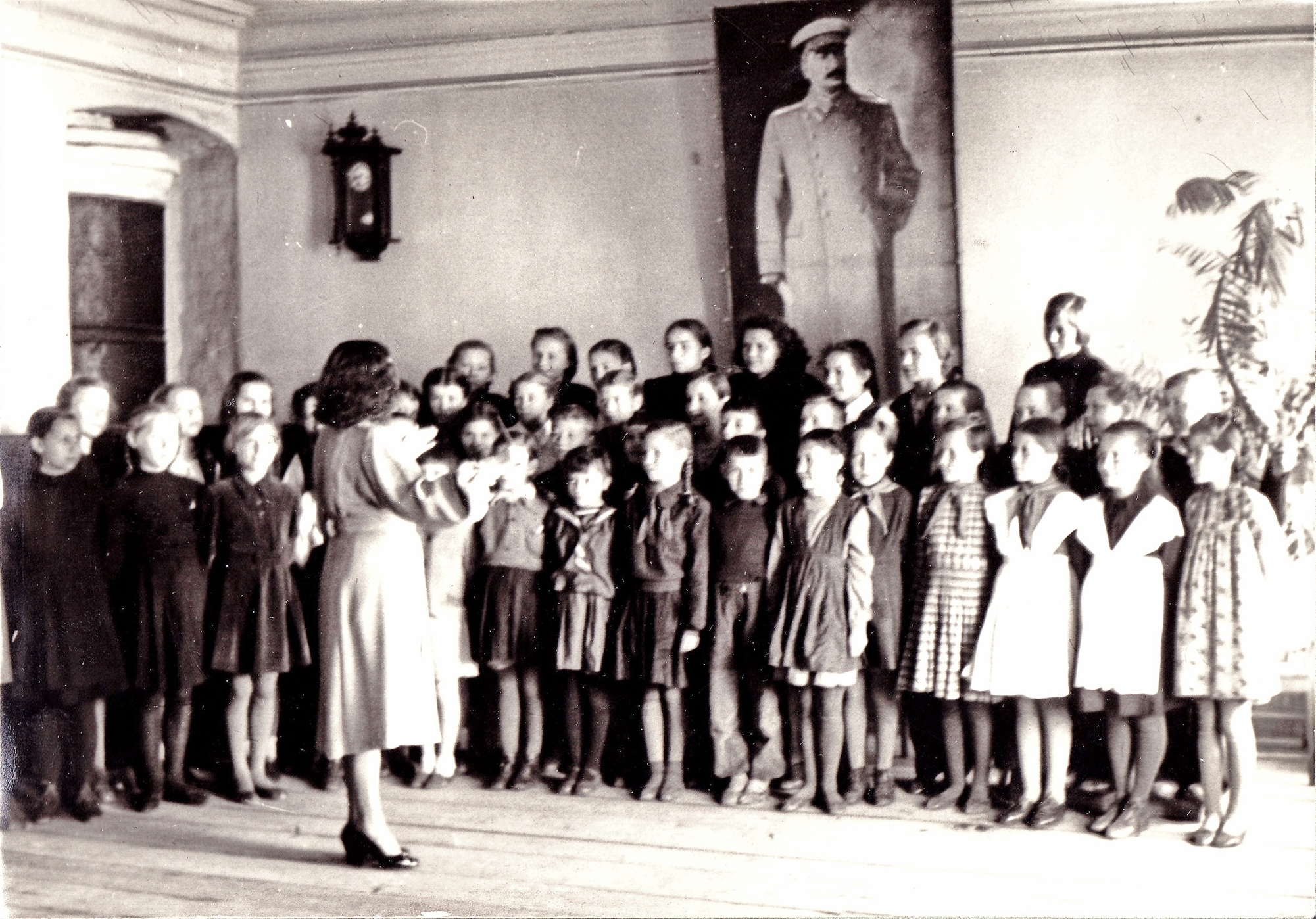 Фото 1948 года — А. Я. Зельд с учениками и выступление хора: