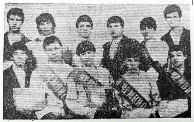 Стоит третий справа — Манушин Николай, сидит третий справа — его брат Манушин Виктор, стоят: третий слева — Иван Кузьмин, четвёртый — Наиль Давлеев.
