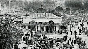 Магазин был на пересечении улиц — Базарной (Ленина) и Николаевской (Бебеля).