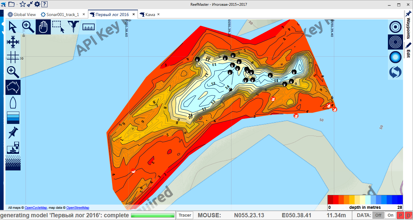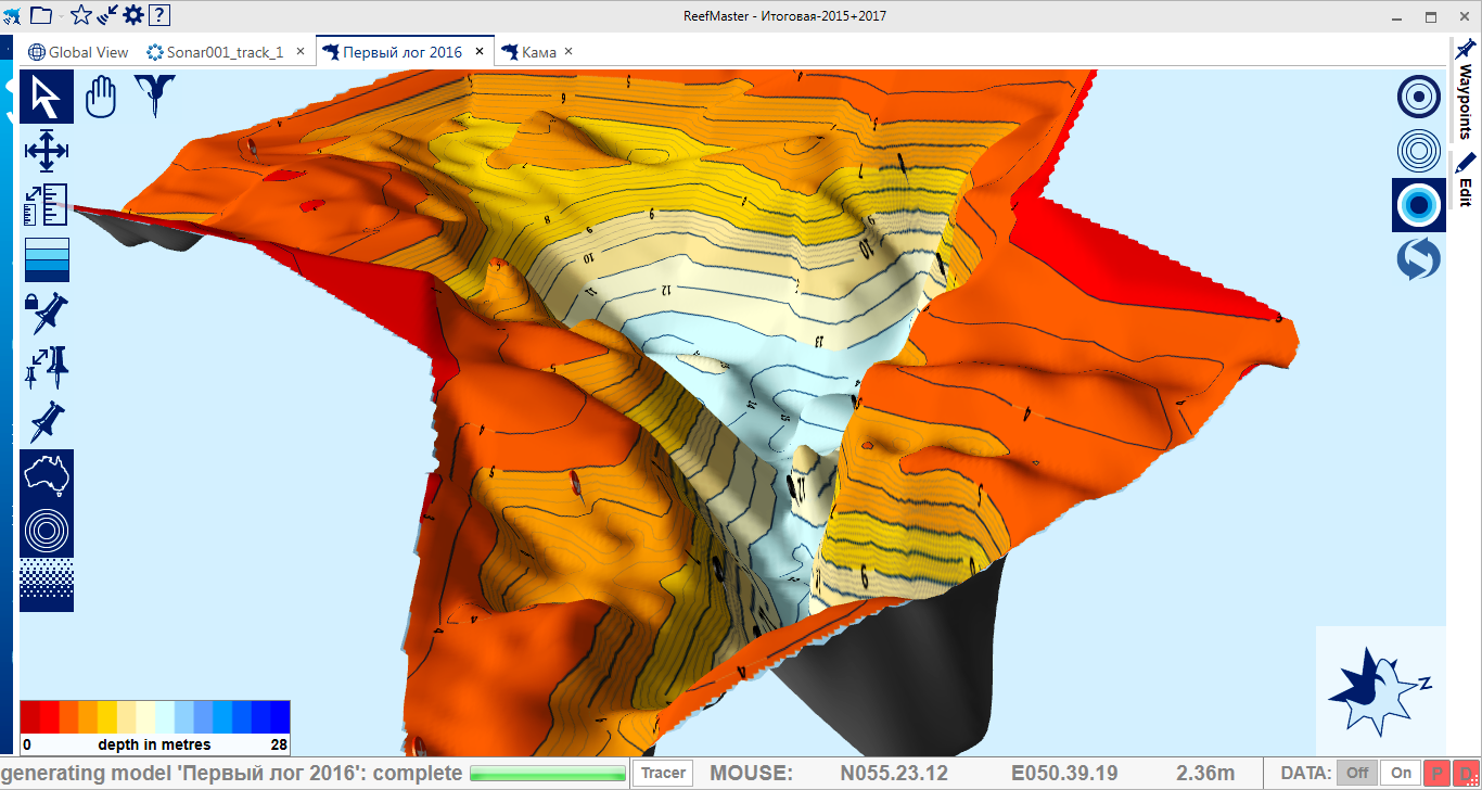 1) 28 января — установка и изучение принципа работы программы ReefMaster версии 1.7, получение первой карты глубин из лога, который любезно мне предоставил Александр Сидоров.