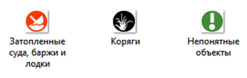 Слой 3 (KMZ) — затопленные суда, баржи и лодки; коряги; непонятные подводные объекты